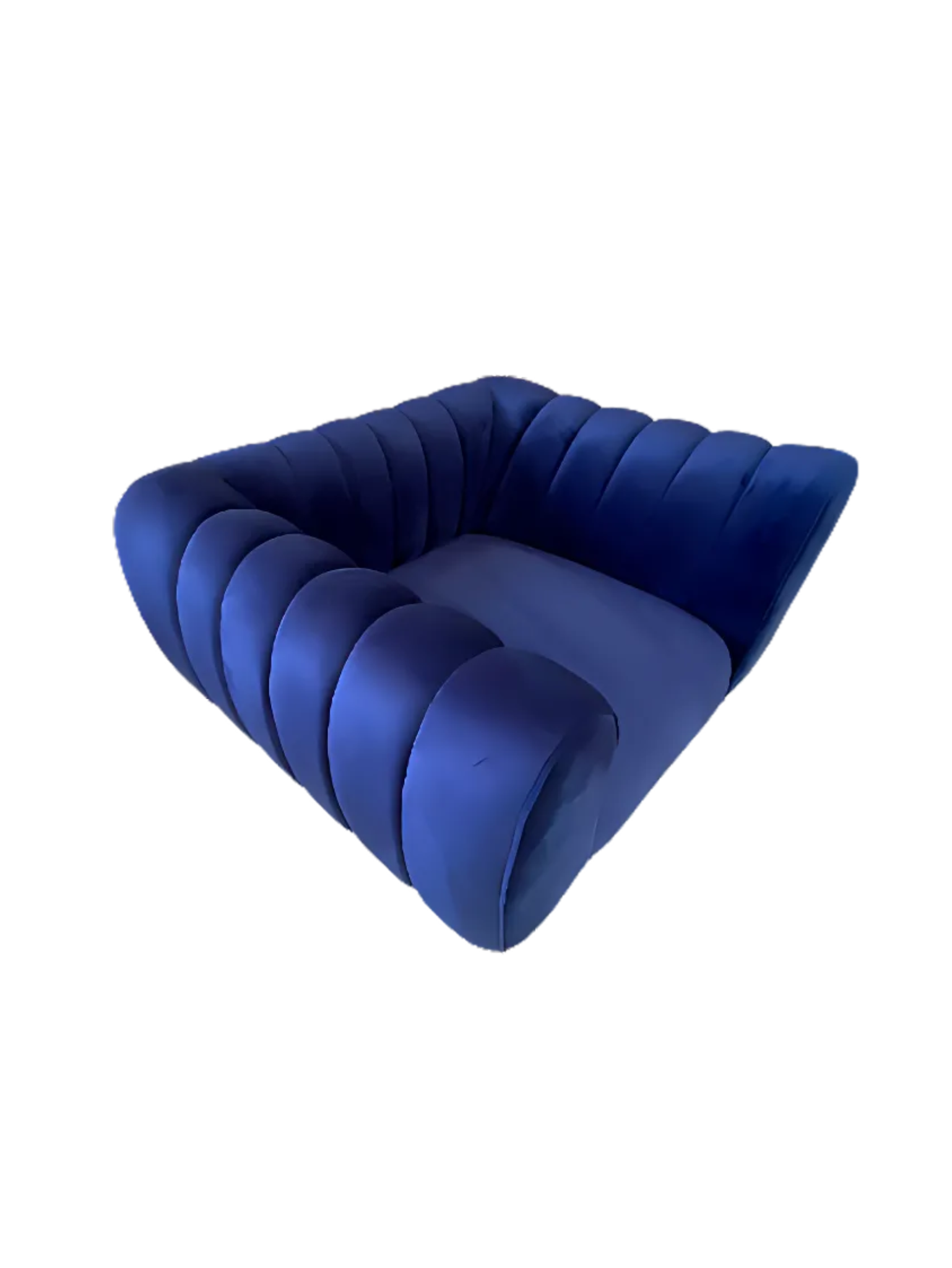 The Milano Solo is a sophisticated 1-seater sofa designed for ultimate comfort and modern elegance. Upholstered in luxurious deep blue velvet, it features a plush channel-tufted back and curved armrests, offering both style and coziness. With its bold yet inviting design, this sofa is perfect for contemporary living rooms, lounge spaces, or upscale hotel settings, making a refined statement in any interior.