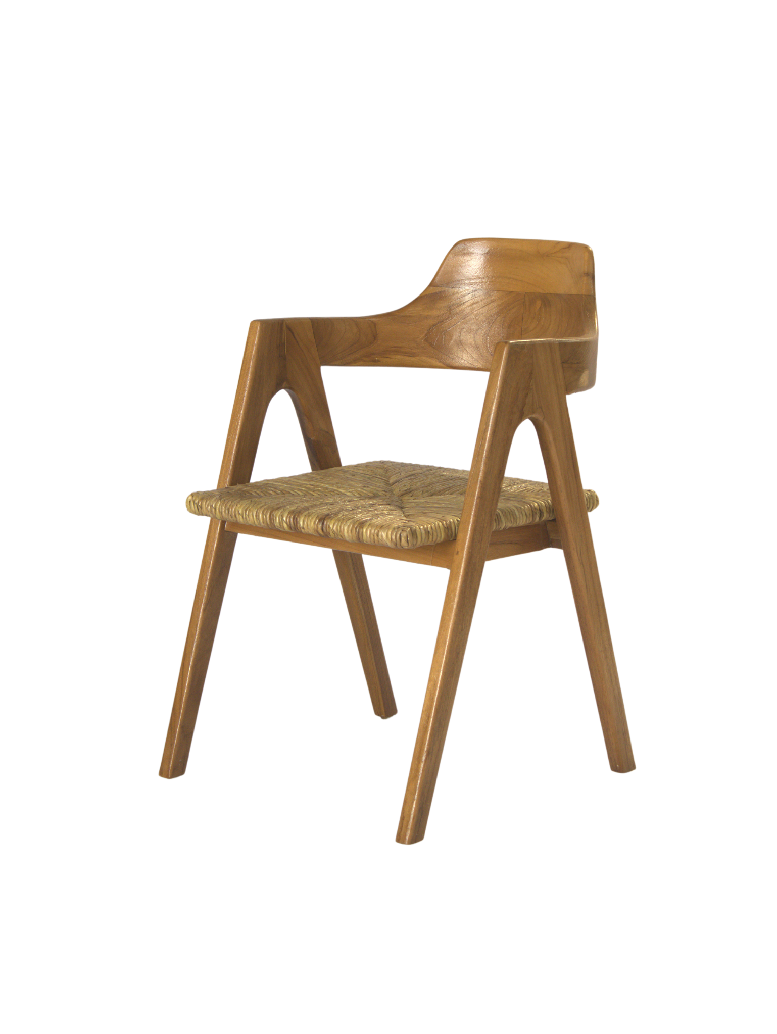 The Solva Dining Chair is a statement of artisanal craftsmanship and contemporary design. Built from solid wood, it features an ergonomically curved backrest and sculpted armrests for superior comfort. The handwoven natural fiber seat adds a touch of texture, ensuring both durability and a relaxed seating experience. With its bold angles and organic materials, the Solva chair is perfect for modern dining spaces, stylish cafés, and warm, inviting interiors.