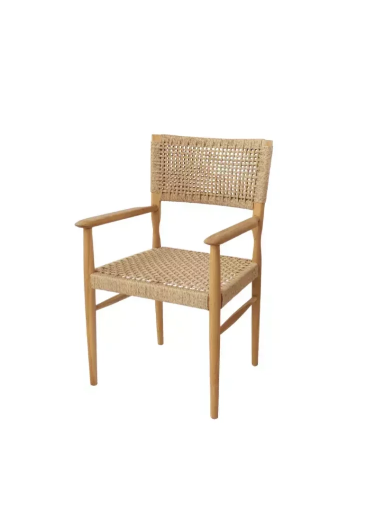 The Terra Woven Armchair showcases the perfect fusion of natural materials and classic design. Featuring a sturdy wooden frame, a handwoven backrest, and a matching woven seat, this chair offers exceptional comfort and durability. The elegantly curved armrests provide additional support, making it a practical and stylish choice for dining areas or as a statement chair in living spaces. With its timeless craftsmanship and organic textures, the Terra Woven Armchair complements a wide range of interior styles, from modern to rustic.
