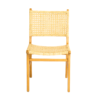 This elegantly designed dining chair combines simplicity and functionality, featuring a natural wooden frame paired with a handwoven cane seat and backrest. Its minimalist aesthetic highlights the beauty of natural materials, making it a versatile piece for both modern and traditional interiors. The sturdy construction ensures durability, while the cane weave provides lightweight comfort and ventilation. Ideal for dining rooms, living spaces, or as an accent chair.