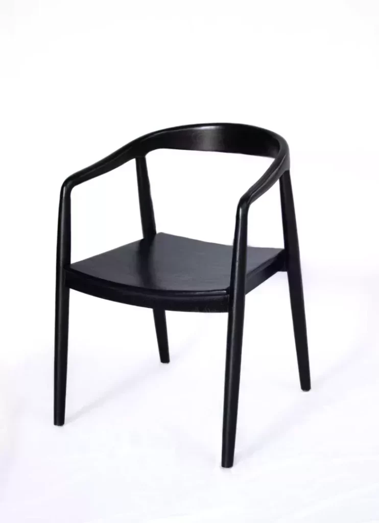 The Velvet Noir Dining Chair exudes sophistication with its sleek black wooden frame and gracefully curved design. Perfectly blending elegance and comfort, it features integrated armrests and a smooth seat that invites relaxed dining experiences. Its minimalist silhouette and rich black finish make it an ideal addition to modern dining spaces, adding a touch of timeless luxury to any setting. Built with durability in mind, this chair is as practical as it is stylish.