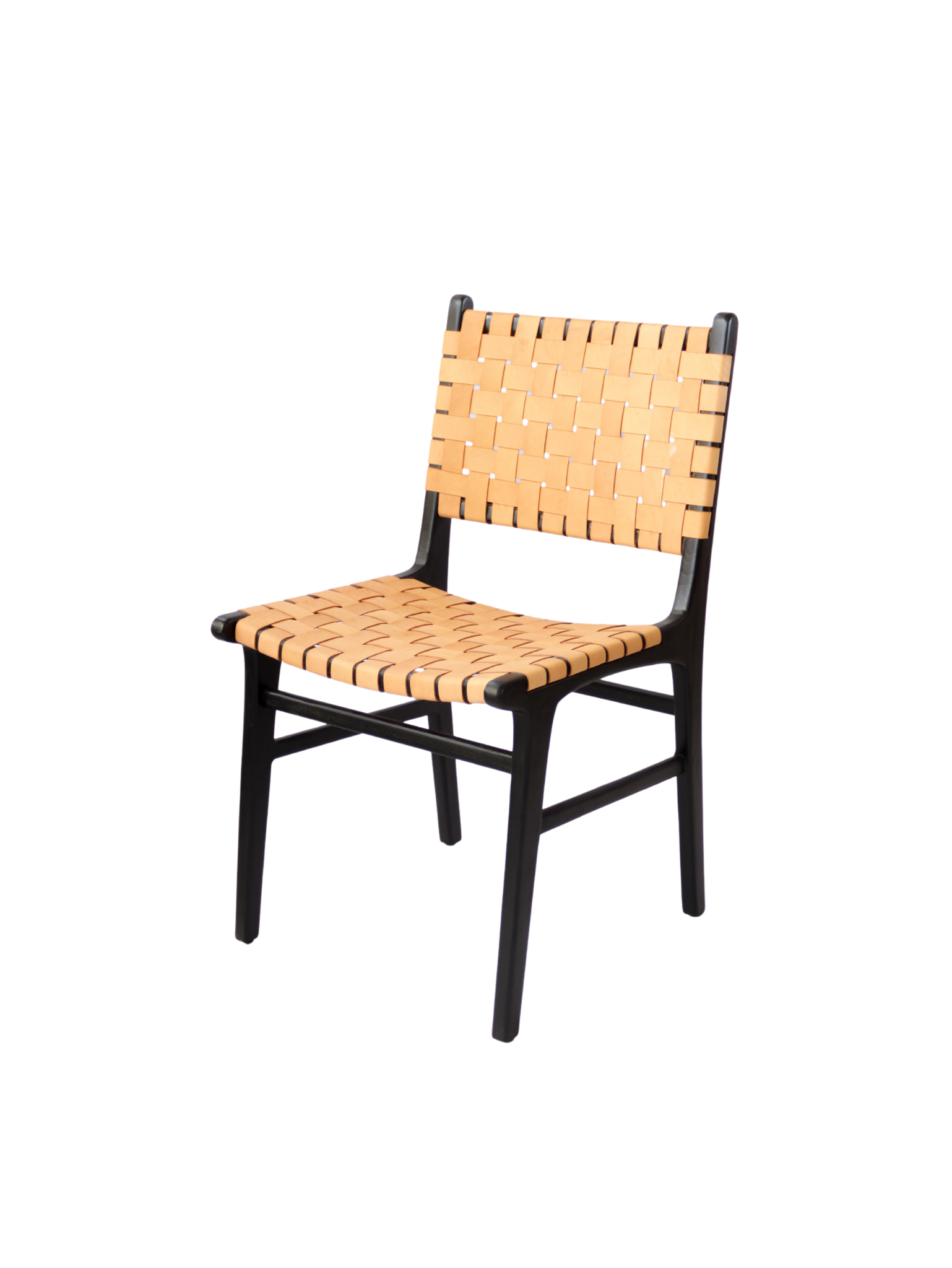 The Vittoro Dining Chair is a striking blend of bold contrast and artisanal craftsmanship. Designed with a solid wood frame in a deep black finish, it features a handwoven leather strap seat and backrest, creating a unique interplay of texture and durability. The sleek silhouette and slightly curved back ensure comfort while maintaining a strong visual presence, making the Vittoro chair perfect for modern dining spaces, upscale restaurants, and contemporary interiors. Its timeless mid-century appeal pairs effortlessly with industrial, Scandinavian, and eclectic décor styles.